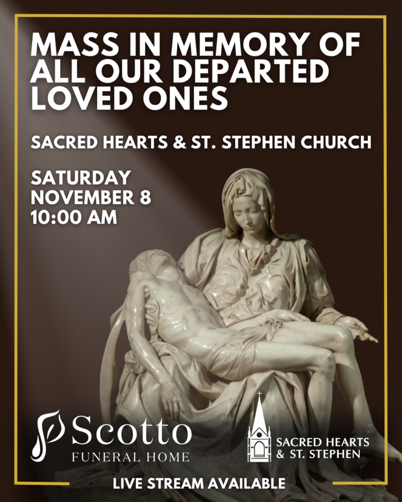 | You and your family are warmly invited to join us for the 65th Annual Scotto Funeral Home Mass, a heartfelt celebration in memory of all our departed loved ones. This special Mass will be held on Saturday, November 8th, 2025, at 10:00 AM at the parish. Come together in prayer and remembrance as we honor the lives of those who have gone before us. Light refreshments will be served following the Mass, offering a time for fellowship and comfort. |