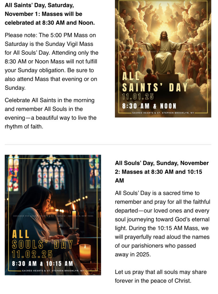 - Sunday Masses: Saturday Vigil at 5:00 pm, and Sunday at 8:30 am and 10:15 am