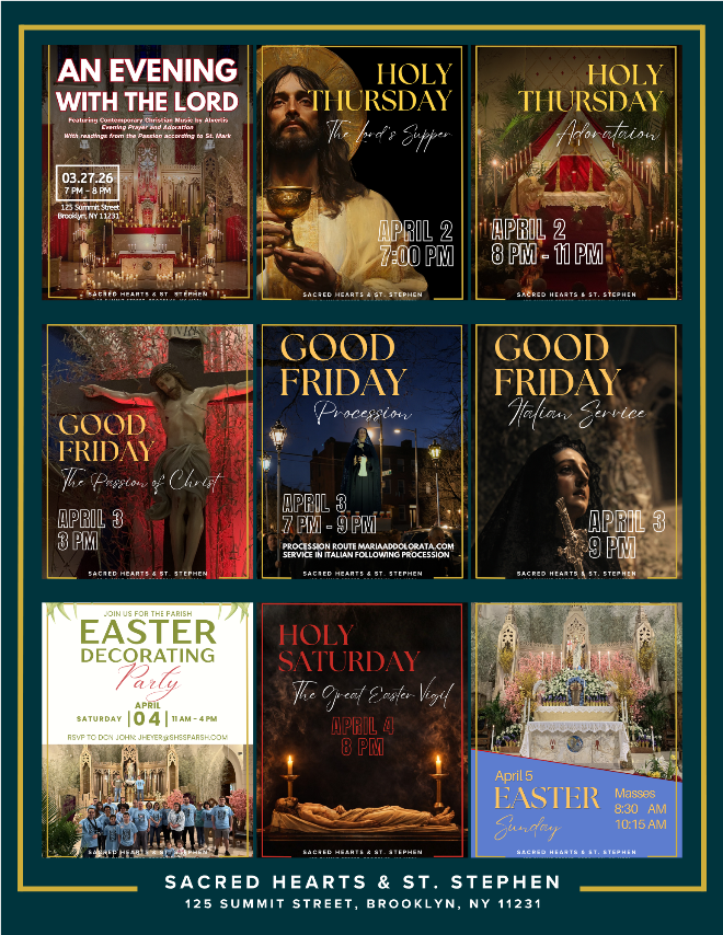 And to everyone who calls this parish home in whatever way — whether you come on the great feasts like Easter and Christmas, for baptisms, funerals, or weddings, carry our Italian heritage in your heart, are new to the area, or are curious again after time away — your Holy Week is here.